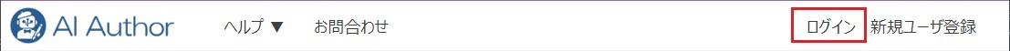 AI Authorトップページ右上の「ログイン」ボタンからログイン操作を行います。