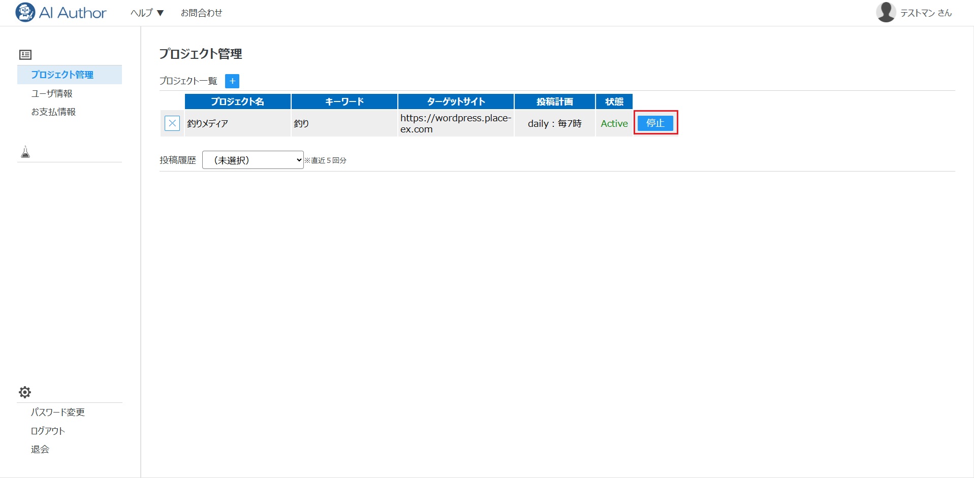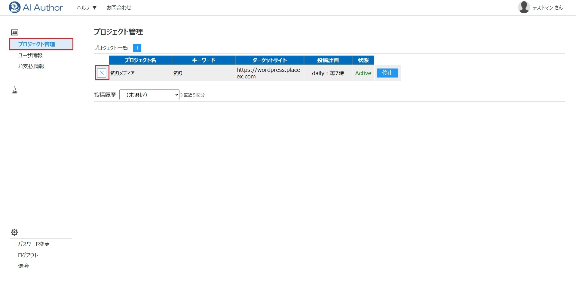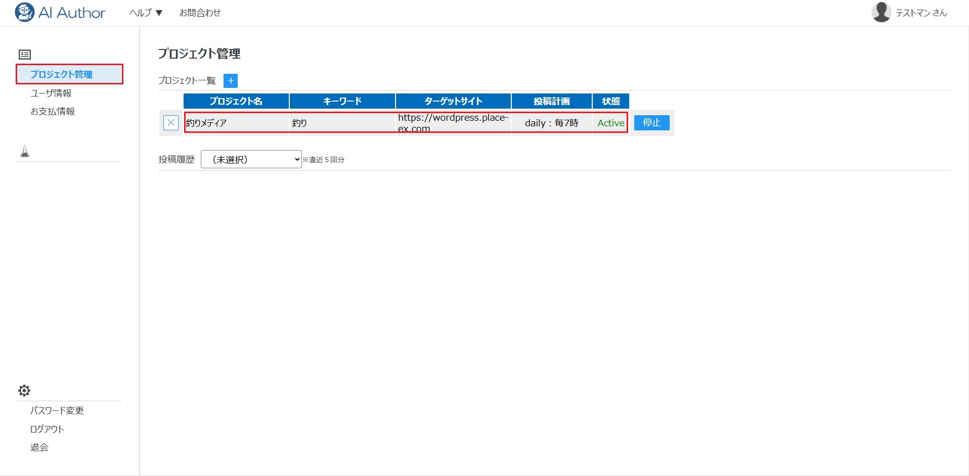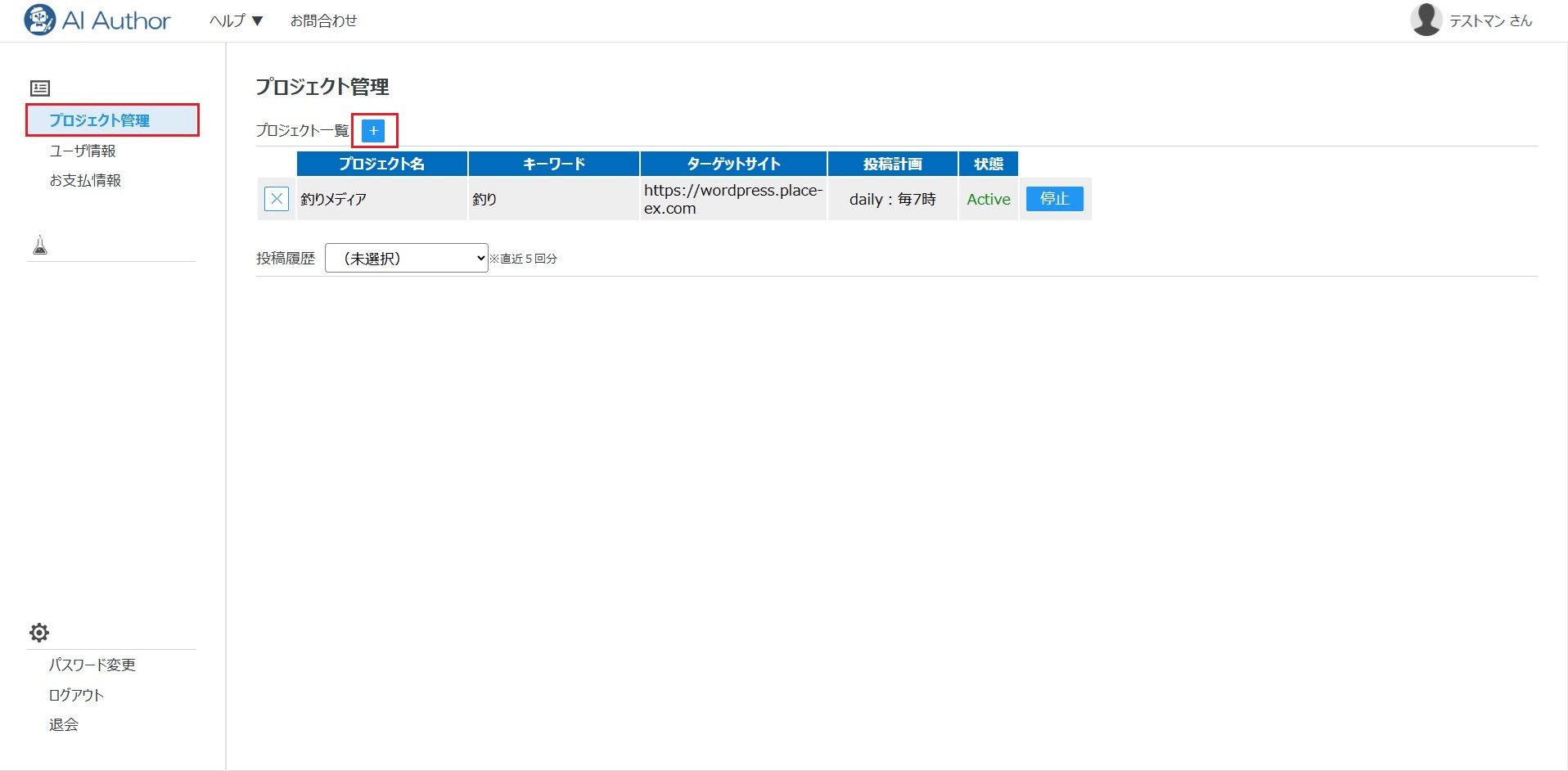 AI Authorは、プロジェクトを登録し、プロジェクトの「開始」操作を行うことで、動作を開始します。