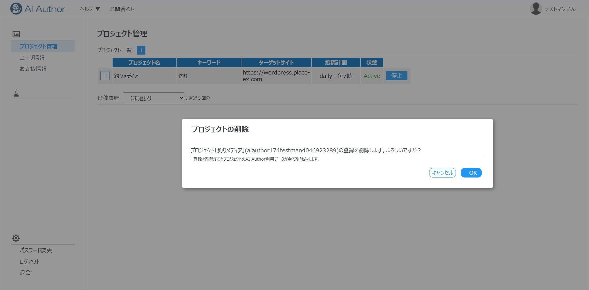 ※プロジェクトを削除すると、当該プロジェクトに関する情報はすべて削除されます。